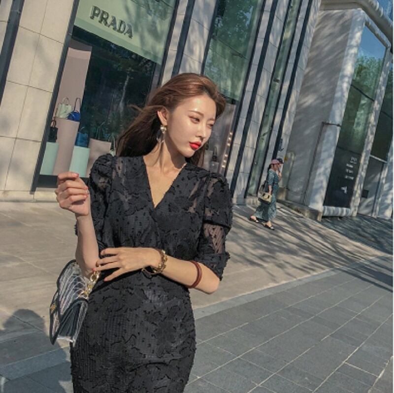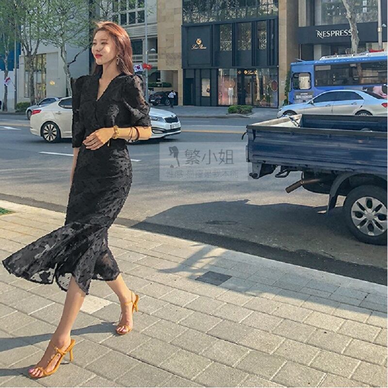 ワンピース フレアスカート ロング丈 袖あり 5分袖 ボリューム袖 Vネック 襟なし フレア スリム タイト フリル ファスナー ハイウエスト 大人可愛い きれいめ 大人 上品 大人女子 こなれ感 モード系 セクシー 無地 春 夏 10代 20代 レディース 女性用 オフィス ビジネス OL 通勤 学生 通学 デート お出かけ 女子会 お泊まり 休日 旅行 ホテル ガーデン レストラン 普段使い サイズ S M L XL 2XL 3XL 4XL 色展開 ブラック