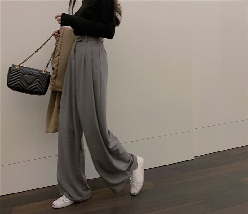 ボトムス パンツ ワイドパンツ ロング丈 ワイド ファスナー ポケット ハイウエスト 前開き シンプル 大人 上品 おしゃれ お洒落 かっこいい 大人女子 こなれ感 メンズライク クール とろみ感 無地 オールシーズン レディース 女性用 通勤 学生 通学 デート お出かけ 女子会 休日 旅行 ホテル レストラン 着回し 普段使い S M L グレー ブラック