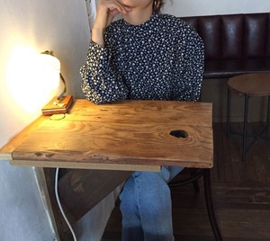 バックボタンのデザインが可愛い花柄ブラウス。
