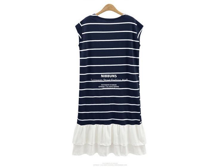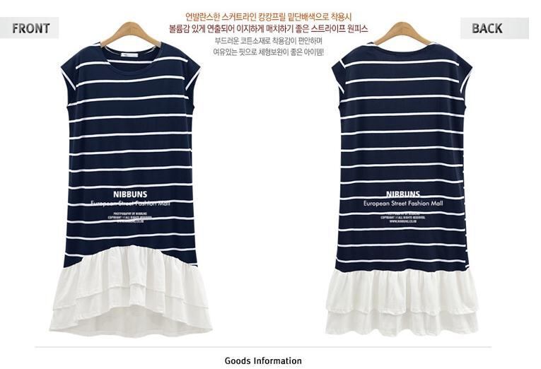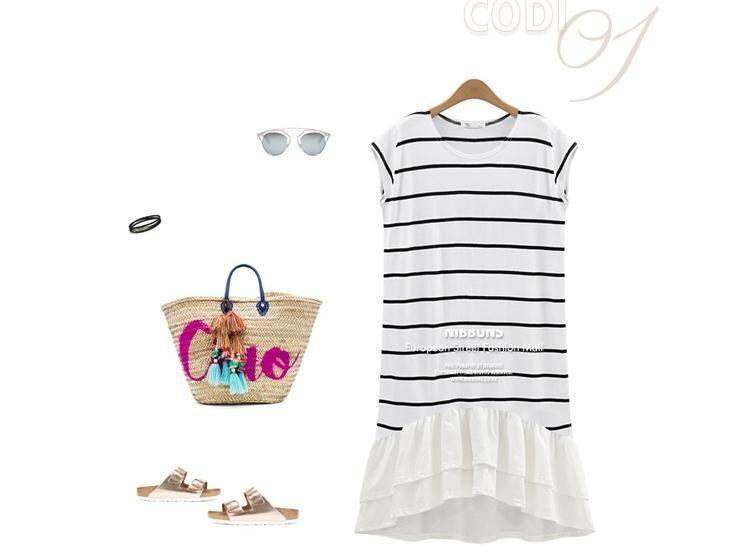 裾フリル セレカジ かわいい ミディアム 半袖 クルーネック Aライン ミモレ丈 ボーダー ワンピース 春夏