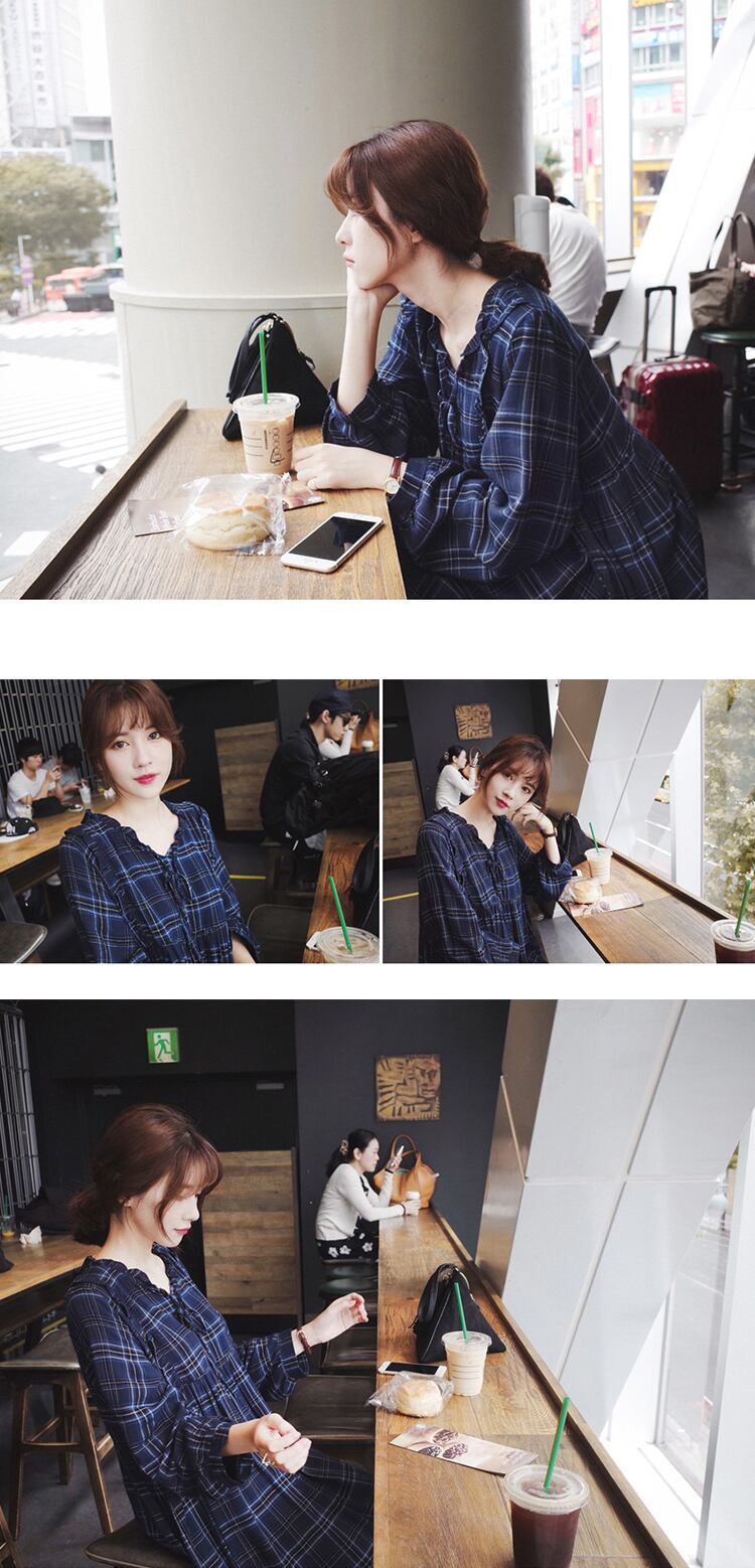 /タータンチェック/長袖/Vネック/