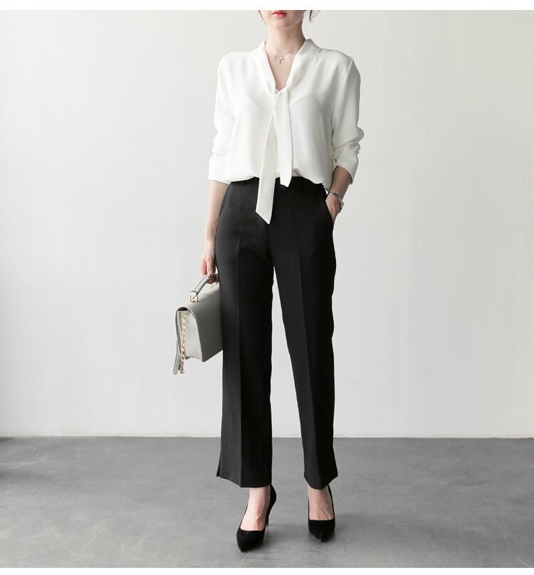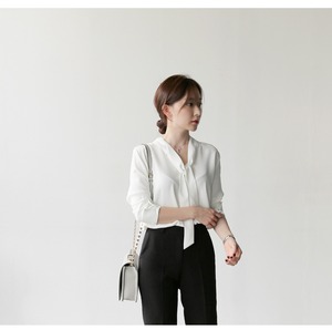 ボウタイ リボンタイ オフィスコーデ ミディアム 長袖 Vネック 無地 トップス ブラウス・シャツ 春夏秋 FKOM5260