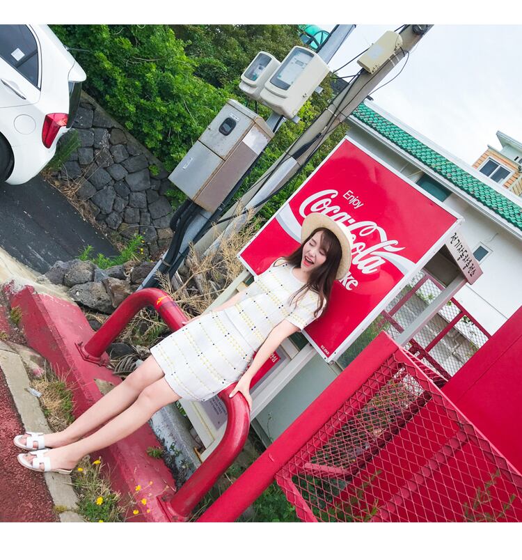 バイカラー かわいい ガーリー ウエストゴム ショート 半袖 クルーネック その他チェック ワンピース