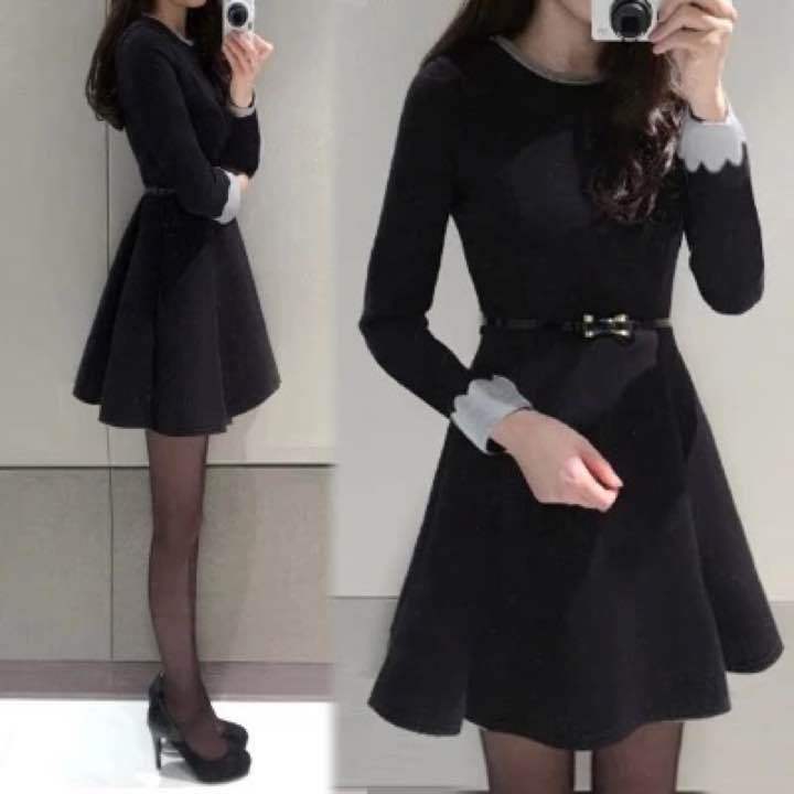 【即納】リボンベルト かわいい フレアワンピース ミニ 長袖 袖コンSGSA0030